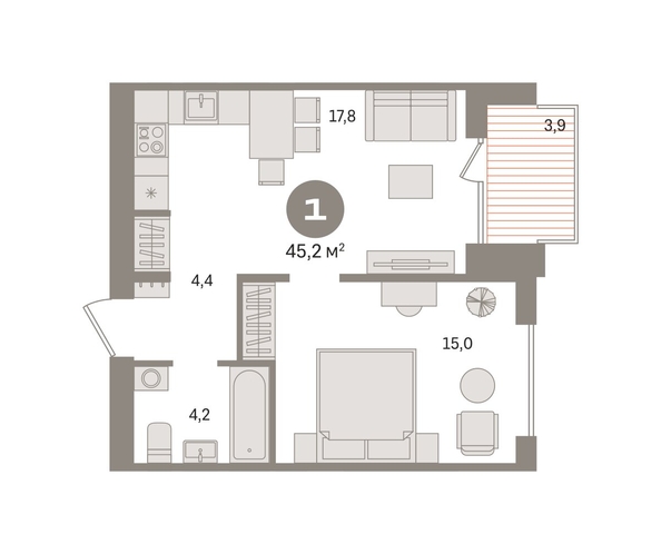 Квартира с кухней-гостиной и одной спальней в жилом районе «Пшеница». Особенности планировки: предчистовая отделка, балкон. № квартиры в нашей базе: ПШЦ02.1-Ж2.2.3. Номер объявления SD54-1035837.