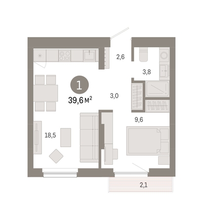 Однокомнатная квартира в квартале «Лебедевский» — это квартира с объединённой кухней-гостиной и отдельной спальней. Планировкой предусмотрены ниши для хранения вещей, отдельная гардеробная или шкаф в спальне, просторная ванная комната. Есть варианты квартир с тёплой лоджией, где можно разместить рабочее место, или открытой террасой.