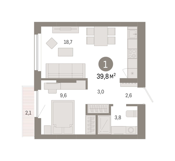 Однокомнатная квартира в квартале «Лебедевский» — это квартира с объединённой кухней-гостиной и отдельной спальней. Планировкой предусмотрены ниши для хранения вещей, отдельная гардеробная или шкаф в спальне, просторная ванная комната. Есть варианты квартир с тёплой лоджией, где можно разместить рабочее место, или открытой террасой.