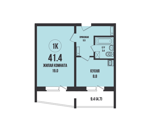 Продам 1-комнатную 41.4 кв.м. 13/14 этаж, Новосибирск, генерал-майора Рожкина А.Н. ул, 5.