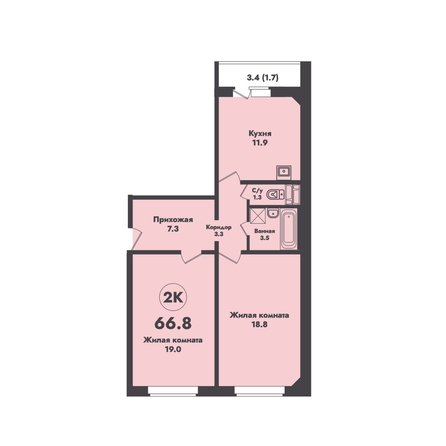 Продам 2-комнатную 66.8 кв.м. 16/17 этаж, панельный, Новосибирск, Объединения ул, 4.