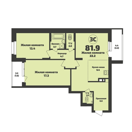 Общая площадь квартиры — 81.9 кв.м. Компания-застройщик — Энергомонтаж.
