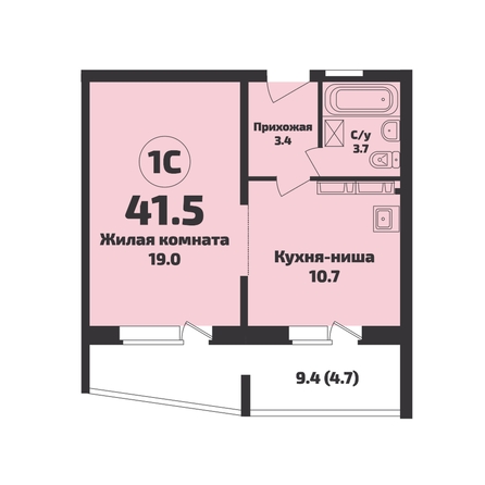 Общая площадь квартиры — 41.5 кв.м. Компания-застройщик — Энергомонтаж.