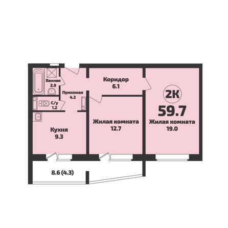 Общая площадь квартиры — 59.7 кв.м. Компания-застройщик — Энергомонтаж.