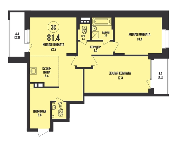 Общая площадь квартиры — 81.4 кв.м. Тип дома — панельный. Компания-застройщик — Энергомонтаж.