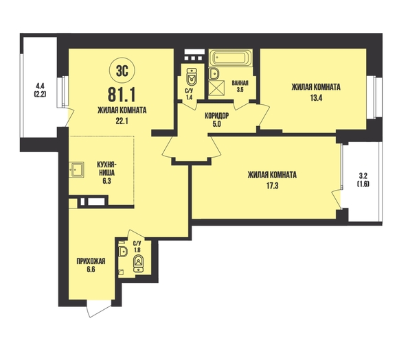 Общая площадь квартиры — 81.1 кв.м. Тип дома — панельный. Компания-застройщик — Энергомонтаж.