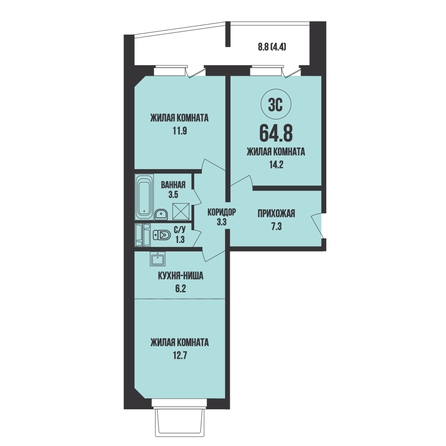 Общая площадь квартиры — 64.8 кв.м. Тип дома — панельный. Компания-застройщик — Энергомонтаж.