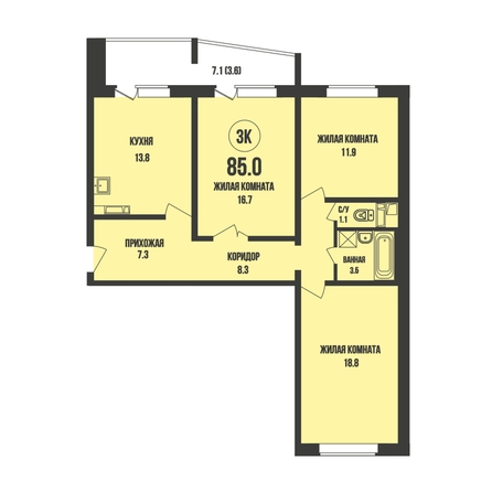 Общая площадь квартиры — 85 кв.м. Тип дома — панельный. Компания-застройщик — Энергомонтаж.