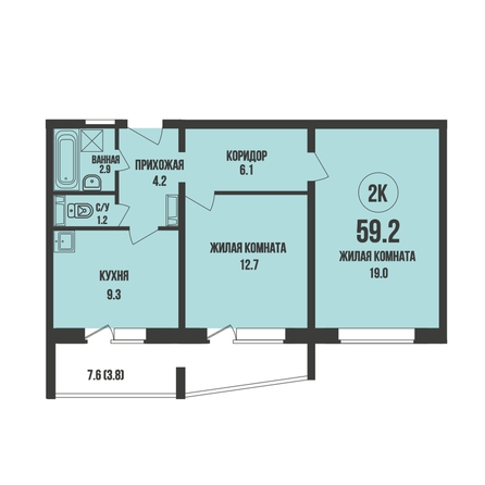 Общая площадь квартиры — 59.2 кв.м. Тип дома — панельный. Компания-застройщик — Энергомонтаж.