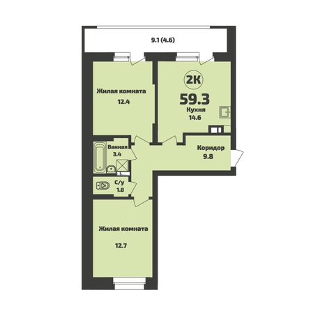 Общая площадь квартиры — 59.3 кв.м. Тип дома — панельный. Компания-застройщик — Энергомонтаж.