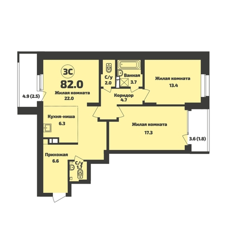 Общая площадь квартиры — 82 кв.м. Тип дома — панельный. Компания-застройщик — Энергомонтаж.