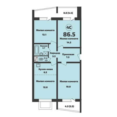 Общая площадь квартиры — 86.5 кв.м. Тип дома — панельный. Компания-застройщик — Энергомонтаж.