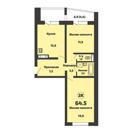 Общая площадь квартиры — 64.5 кв.м. Тип дома — панельный. Компания-застройщик — Энергомонтаж.