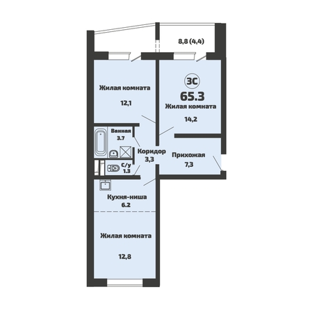Общая площадь квартиры — 65.3 кв.м. Тип дома — панельный. Компания-застройщик — Энергомонтаж.