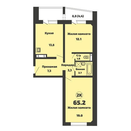 Общая площадь квартиры — 65.2 кв.м. Тип дома — панельный. Компания-застройщик — Энергомонтаж.