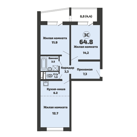 Общая площадь квартиры — 64.8 кв.м. Тип дома — панельный. Компания-застройщик — Энергомонтаж.