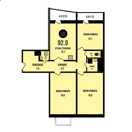 Общая площадь квартиры — 92.9 кв.м. Тип дома — панельный. Компания-застройщик — Энергомонтаж.