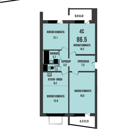 Общая площадь квартиры — 86.5 кв.м. Тип дома — панельный. Компания-застройщик — Энергомонтаж.