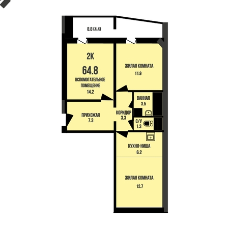 Общая площадь квартиры — 64.8 кв.м. Тип дома — панельный. Компания-застройщик — Энергомонтаж.