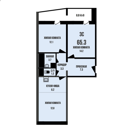 Общая площадь квартиры — 65.3 кв.м. Тип дома — панельный. Компания-застройщик — Энергомонтаж.