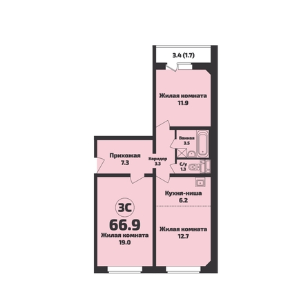 Общая площадь квартиры — 66.9 кв.м. Компания-застройщик — Энергомонтаж.
