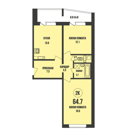 Общая площадь квартиры — 64.7 кв.м. Тип дома — панельный. Компания-застройщик — Энергомонтаж.