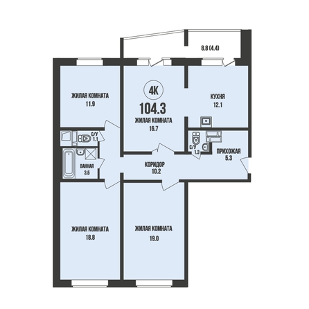 Общая площадь квартиры — 104.3 кв.м. Тип дома — панельный. Компания-застройщик — Энергомонтаж.