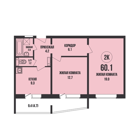 Общая площадь квартиры — 60.1 кв.м. Тип дома — панельный. Компания-застройщик — Энергомонтаж.