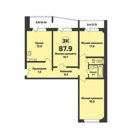Общая площадь квартиры — 87.9 кв.м. Тип дома — панельный. Компания-застройщик — Энергомонтаж.