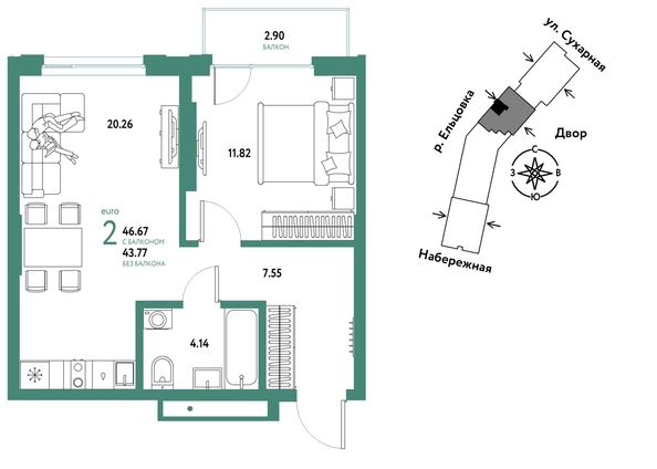 Новая квартира в ЖК «Страна.Береговая» напрямую от федерального застройщика «Страна Девелопмент».Продается 2–комнатная квартира на 4 этаже от застройщика “Страна Девелопмент”. Площадь квартиры 46,67 кв. м.Жилой комплекс «Страна.Береговая» — новый флагманский проект федерального застройщика «Страна Девелопмент» в Новосибирске. Дом на берегу Оби с захватывающими видами из окон. Три секции разной этажности с акцентной башней-доминантой образуют камерное пространство с закрытым двором и личным зелёным садом для отдыха.ПРЕИМУЩЕСТВАСвой приватный двор, окружённый зеленью, которая будет цвести весь год. Двор с релакс-пространством, спортивной зоной с воркаут и настольным теннисом. Детская площадка из природных материалов. Двор круглосуточно находится под видеонаблюдением.Парадные с зелёным оазисом из растений. Для комфорта мы предусмотрели тёплые тамбуры, в зонах ожидания разместили мягкие диваны. Также мы добавили возможность бесключевого доступа — по распознаванию лица или считыванию BLE-ключа.Спроектирована подземная парковка на 217 машиномест. Ваш личный транспорт всегда будет под защитой и видеонаблюдением — переживать о его сохранности не придётся. Въезд в паркинг осуществляется с помощью умной камеры по госномеру либо BLE-метке. А чтобы подняться к квартире, не нужно выходить на улицу — лифты отвезут на нужный этаж. Для гостей за территорией двора предусмотрена открытая гостевая парковка.ОТДЕЛКАКвартиры сдаются с предчистовой отделкой: произведена разводка электричества и отопления, выполнена стяжка пола, стены выровнены «под маяк», установлены розетки, выключатели и радиаторы. ДИЗАЙНЕРСКАЯ ОТДЕЛКАПри покупке квартиры в ЖК «Страна.Береговая» можно включить стоимость ремонта в ипотеку. Пять вариантов на выбор: хлопковая нить, серый шторм, белый камень, шалфей, голубой вереск. Включено всё — обои, ламинат, натяжной потолок и даже кондиционер. Также для вас есть четыре варианта ремонта в ванной — акриловая ванна с экраном, смеситель с лейкой, подвесной унитаз, зеркало с подсветкой. Останется только разместить мебель! СПОСОБЫ ПОКУПКИСотрудники «Страна Девелопмент» будут сопровождать вас на каждом этапе сделки, помогут получить одобрение по ипотеке или снизить ежемесячный платеж.- ипотека- рассрочка- с использованием материнского капитала - 100% оплата наличными