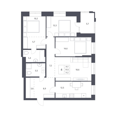 Продается 4-комн. квартира с отделкой White box. Квартира расположена на 4 этаже 11 этажного монолитно-кирпичного дома в клубном комплексе «Новаторы» от группы компаний «Поляков».