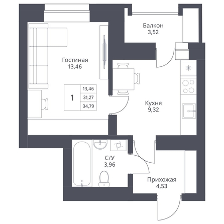 Продается 1-комн. квартира с отделкой White box. Квартира расположена на 2 этаже 24 этажного монолитно-кирпичного дома в Акцентном доме «Актив» от группы компаний «Поляков».