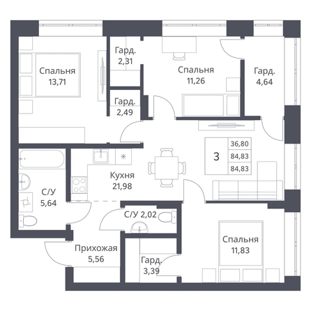 Продается 3-комн. квартира с отделкой White box. Квартира расположена на 3 этаже 18 этажного монолитно-кирпичного дома в миниполисе на Фадеева «Фора» от группы компаний «Поляков».