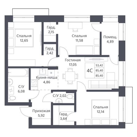Продается 4-комн. студия с отделкой White box. Квартира расположена на 9 этаже 18 этажного монолитно-кирпичного дома в миниполисе на Фадеева «Фора» от группы компаний «Поляков».