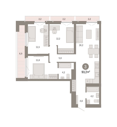 Квартира с кухней-гостиной и тремя спальнями в микрорайоне «Европейский берег». Особенности планировки: лоджия, предчистовая отделка, мастер-спальня, балкон. № квартиры в нашей базе: ЕБГ45-Ж8.7.2. Номер объявления SD54-1036865.