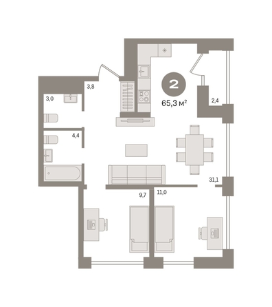 Квартира с кухней-гостиной и двумя спальнями в квартале «Мылзавод». Особенности планировки: второй санузел, лоджия, предчистовая отделка. № квартиры в нашей базе: МЛ-ГП4.2-9-9.26.2. Номер объявления SD54-1036874.