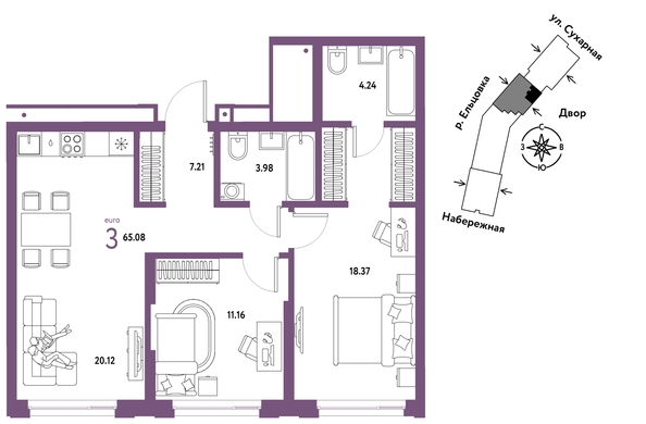 Новая квартира в ЖК «Страна.Береговая» напрямую от федерального застройщика «Страна Девелопмент».Продается 3–комнатная квартира на 18 этаже от застройщика “Страна Девелопмент”. Площадь квартиры 65,08 кв. м.Жилой комплекс «Страна.Береговая» — новый флагманский проект федерального застройщика «Страна Девелопмент» в Новосибирске. Дом на берегу Оби с захватывающими видами из окон. Три секции разной этажности с акцентной башней-доминантой образуют камерное пространство с закрытым двором и личным зелёным садом для отдыха.ПРЕИМУЩЕСТВАСвой приватный двор, окружённый зеленью, которая будет цвести весь год. Двор с релакс-пространством, спортивной зоной с воркаут и настольным теннисом. Детская площадка из природных материалов. Двор круглосуточно находится под видеонаблюдением.Парадные с зелёным оазисом из растений. Для комфорта мы предусмотрели тёплые тамбуры, в зонах ожидания разместили мягкие диваны. Также мы добавили возможность бесключевого доступа — по распознаванию лица или считыванию BLE-ключа.Спроектирована подземная парковка на 217 машиномест. Ваш личный транспорт всегда будет под защитой и видеонаблюдением — переживать о его сохранности не придётся. Въезд в паркинг осуществляется с помощью умной камеры по госномеру либо BLE-метке. А чтобы подняться к квартире, не нужно выходить на улицу — лифты отвезут на нужный этаж. Для гостей за территорией двора предусмотрена открытая гостевая парковка.ОТДЕЛКАКвартиры сдаются с предчистовой отделкой: произведена разводка электричества и отопления, выполнена стяжка пола, стены выровнены «под маяк», установлены розетки, выключатели и радиаторы. ДИЗАЙНЕРСКАЯ ОТДЕЛКАПри покупке квартиры в ЖК «Страна.Береговая» можно включить стоимость ремонта в ипотеку. Пять вариантов на выбор: хлопковая нить, серый шторм, белый камень, шалфей, голубой вереск. Включено всё — обои, ламинат, натяжной потолок и даже кондиционер. Также для вас есть четыре варианта ремонта в ванной — акриловая ванна с экраном, смеситель с лейкой, подвесной унитаз, зеркало с подсветкой. Останется только разместить мебель! СПОСОБЫ ПОКУПКИСотрудники «Страна Девелопмент» будут сопровождать вас на каждом этапе сделки, помогут получить одобрение по ипотеке или снизить ежемесячный платеж.- ипотека- рассрочка- с использованием материнского капитала - 100% оплата наличными