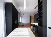Высокие потолки — 3,4 м, входные двери FALKO (2,4 м) с обогреваемым контуром, бесключевым доступом и обширной подсветкой, межкомнатные — скрытого монтажа.