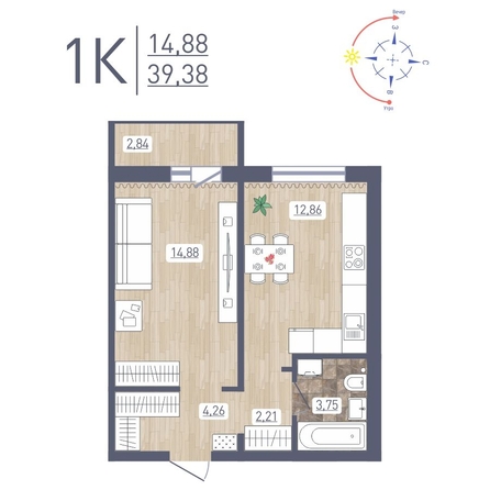 Продам 1-комнатную 39.38 кв.м. 2/17 этаж, монолит-кирпич, Новосибирск, Забалуева ул, 69.