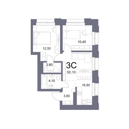 Общая площадь квартиры — 50.1 кв.м. Тип дома — монолит-кирпич. Компания-застройщик — Дом-Строй.