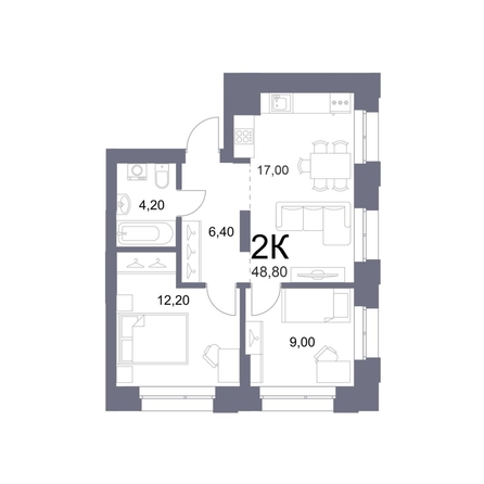 Общая площадь квартиры — 48.8 кв.м. Тип дома — монолит-кирпич. Компания-застройщик — Дом-Строй.