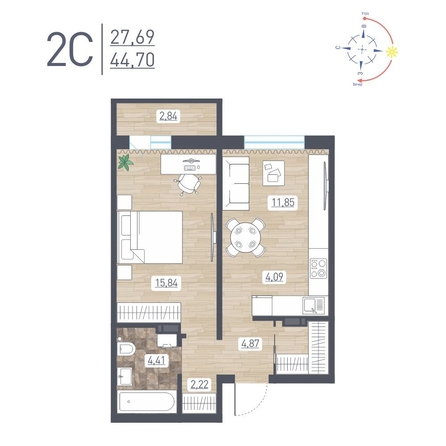 Продам 2-комнатную 44.7 кв.м. 17/17 этаж, монолит-кирпич, Новосибирск, Радуга Сибири, дом 11.