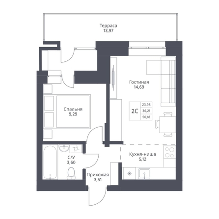 Продается 2-комн. студия с отделкой White box. Квартира расположена на 2 этаже 24 этажного монолитно-кирпичного дома в Акцентном доме «Актив» от группы компаний «Поляков».