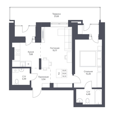 Продается 2-комн. квартира с отделкой White box. Квартира расположена на 2 этаже 24 этажного монолитно-кирпичного дома в Акцентном доме «Актив» от группы компаний «Поляков».