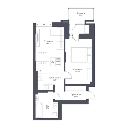 Продается 2-комн. студия с отделкой White box. Квартира расположена на 2 этаже 24 этажного монолитно-кирпичного дома в Акцентном доме «Актив» от группы компаний «Поляков».
