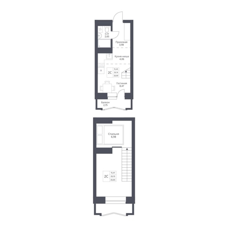 Продается 2-комн. студия с отделкой White box. Квартира расположена на 2 этаже 24 этажного монолитно-кирпичного дома в Акцентном доме «Актив» от группы компаний «Поляков».