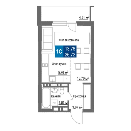 Продается Студия  в новостройке Чкалов, дом 7  по адресу  Новосибирская область, Новосибирск, Заельцовский район от застройщика.