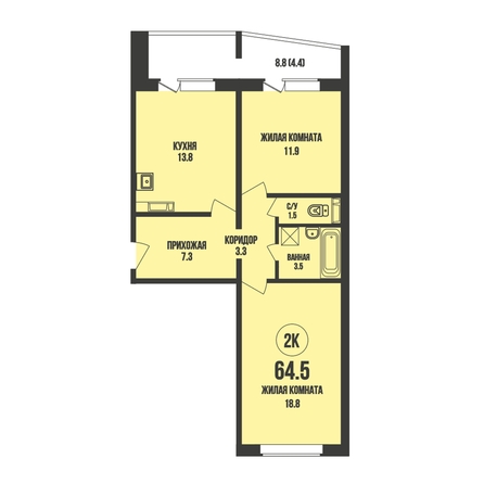 Продам 2-комнатную 64.5 кв.м. 13/13 этаж, панельный, Новосибирск, Династия, дом 904.
