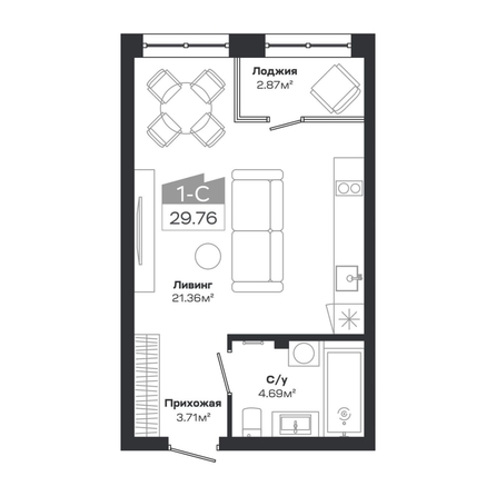 Продам студию 29.76 кв.м. 6/8 этаж, монолит-кирпич, Краснообск, Базилик, дом 1.