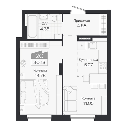 Общая площадь квартиры — 40.13 кв.м. Тип дома — монолит-кирпич. Компания-застройщик — ГРУППА МЕТА.